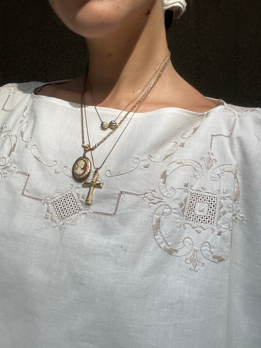 Ezra Top (Portuguese tablecloth & Vintage Lace)